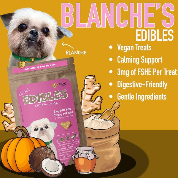 Made for dogs like Blanche, who need gentle daily support, these heart-shaped treats are ideal for supporting calm, immune balance, and overall wellness. Our edibles for dogs make it easy to include CBD as part of your dog’s routine.