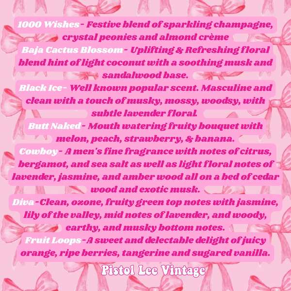 All Freshies are Made To Order If you would like certain colors please let us know, if not they may vary in color they may not be exactly like the picture. Please Note: All freshies may be slightly different due to them being handmade! Warning-When using these in a vehicle or anywhere that can get excessively hot, do not lay them on a surface. Also, if you use a window/windshield sunshade In your vehicle, make sure the car scent does not get caught in between the sunshade and window, the excessive heat can cause it to melt and stick to a surface.